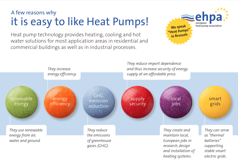 In 2014 EHPA decided to reach out to all the MEPs. The aim of our campaign was to show them that it is easy to like heat pumps, as they benefit EU in 6 different aspects: