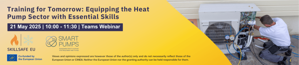 The SKILLSAFE EU and Smart-Pumps projects are joining forces for this first thematic online seminar, bringing together experts and stakeholders from the heat pump and energy sectors.